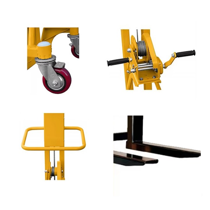 500kg el palet stakcer El cihazını döndürerek, operatör iç mekanik yapıyı kargo çatalını yükseltmek veya düşürmek için tahrik eder, böylece istifleyicinin istifleme işlemini sağlar.